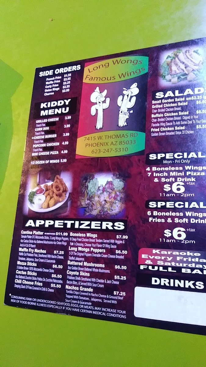 Welcome to Long Wongs AZ Famous Wings, a paradise for wing lovers located at 7415 W Thomas Rd, Phoenix, AZ. Here, the menu is packed with tantalizing options that cater to every palate. The highlight is undoubtedly their famous wings, available in flavor combinations that will leave you craving more. Diners rave about the sauciness and flavor depth of the hot bone-in wings.